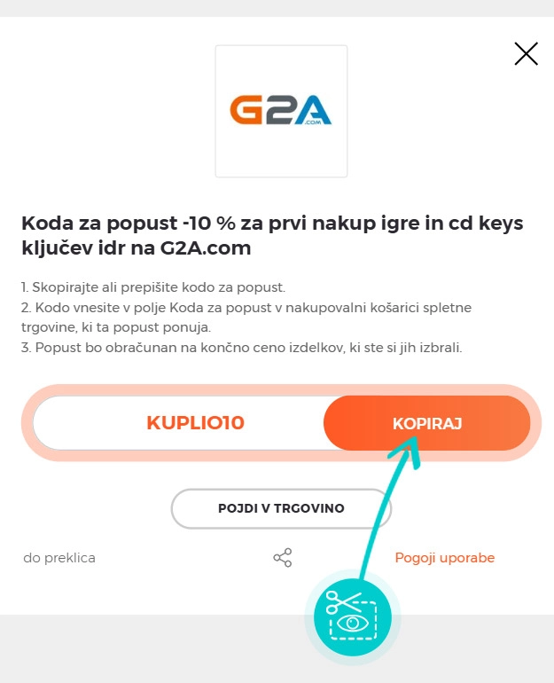 Kopirajte ali prepišite kodo za popust in kliknite gumb »Pojdi v trgovino«. Nato boste preusmerjeni neposredno v spletno trgovino G2A.com.