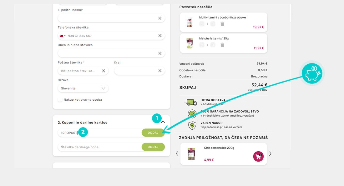 Za uporabo promo kode registracija ni obvezna. Uporabite kodo v spletni košarici, ne da bi imeli uporabniški račun v spletni trgovini.